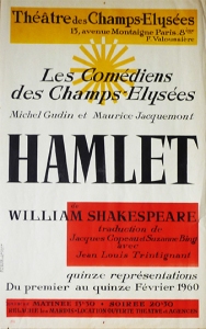 | Interprétation | Jean-Louis Trintignant (Hamlet, prince de Danemark, fils du feu roi, neveu dit roi régnant) |