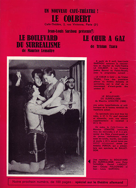 Création le : Festival Permanent d'Avant-Garde / Café-Théâtre Le Colbert (Paris)