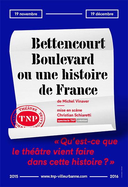 | 2015-2016 | Théâtre National Populaire (Villeurbanne) | → | [26 rep.] | (Salle Roger-Planchon) |